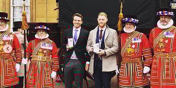 England cricketers Ben Stokes and Jos Buttler at the Buckingham Palace. (Photo | Instagram/@stokesy)