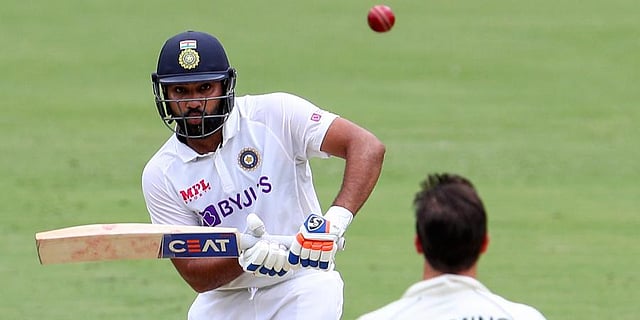 Batting serenely on 44, Rohit Sharma gave Lyon the charge, tried to find the gap between deep square leg and long on but only ended up chipping the ball rather than muscling it. It got the required elevation but the timing wasn't there and Mitchell Starc completed a running catch. This is another in a catalogue of dismissals that will hang over Sharma's head.