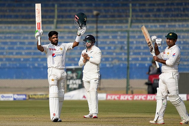 Azam now has 1,170 runs in nine Tests this year -- the highest run scorer in Tests in 2022. He also beat Mohammad Yousuf's 2006 aggregate of 2,435 in all three formats, taking 2,584 runs across the board this year. The Pakistan skipper swept spinner Michael Bracewell for a six towards mid-wicket to reach his ninth Test century. He has also hit 16 boundaries.