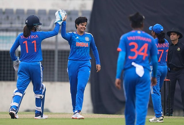 The slow bowlers were also on target as the two debutants Anusha Bareddy and Minnu Mani gave a good account of themselves under senior off-spinner Deepti Sharma.