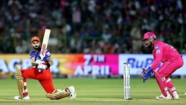 That is when RR resorted to spin, and R Ashwin delivered a boundary-less over. With Avesh Khan playing a decent role at the other end, Ashwin continued. Chahal, too, joined, keeping RCB in check. Between overs 5-8, they added only 22 runs with Kohli going from 30 off 22 to 38 from 35 balls.
