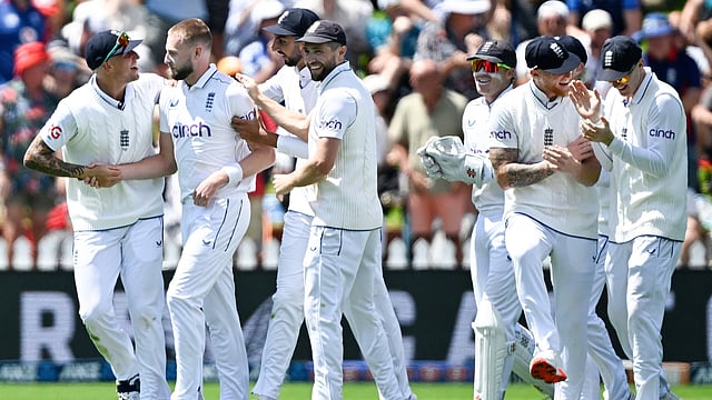 WELLINGTON: England led New Zealand by 533 runs with five second-innings wickets in hand Saturday after another day of extraordinary incidents and milestones, including a hat-trick on the second day of the second test at the Basin Reserve.