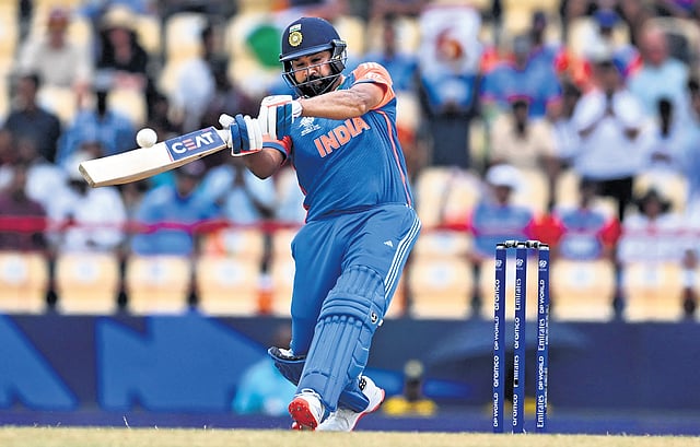 Now, this was not just some blind slogging and hitting big sixes irrespective of the lengths. Rohit was anticipating the lengths, he was playing with the fields. And of course, he had all the time in the world. To understand the zone Rohit was in, look at the three boundaries (two fours and a six) that came off Marcus Stoinis. Rohit charged at him first, and then created room to pull into the stands. The final shot — a step down the crease and loft through covers for a six. This was a day where one could only sit back and marvel at the ball striking of Rohit.