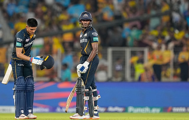 Unfortunately for him, Gujarat had also turned a corner. With Wriddhiman Saha suffering a niggle, Shubman Gill and B Sai Sudharsan, the openers, rammed into the new-ball bowlers with a gusto rarely seen in this team. In the process, they set multiple batting records. Gill, who has a torrid time of it over the last few games, also raised his bat to bring up the 100th ton in the history of the league. His celebrations — a wild scream followed by a punch and a word that rhymes with duck — told its own story. Understandable too considering a very solid team in 2022 and 2023 have struggled to have the same kind of impact under his leadership. Moments after Gill's delight, Sudharsan, one of the bright spots for the franchise this year, acknowledged the cheers for his maiden IPL ton.