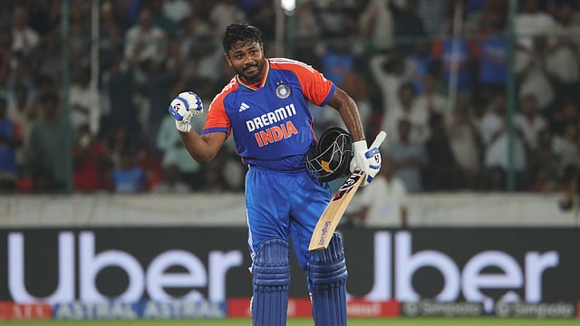 HYDERABAD: Wicketkeeper-batter Sanju Samson blasted his maiden T20I century, reaching a stunning hundred in just 40 balls, against Bangladesh in the third T20I here in Hyderabad on Saturday.