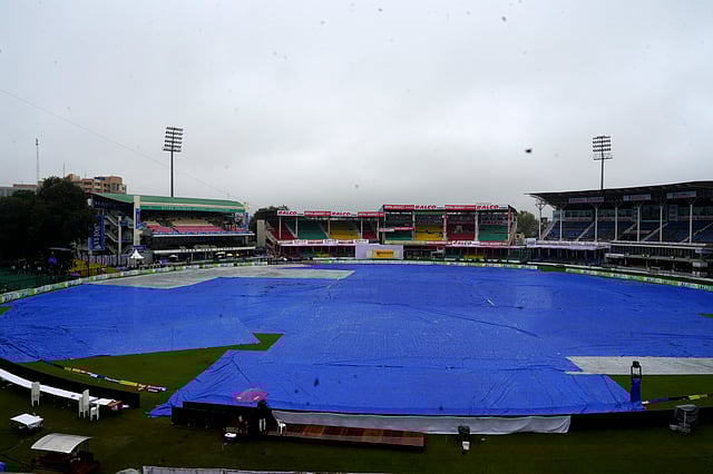 The drizzle in the morning turned into heavy rain, not letting the action begin on day two at Green Park Stadium.
