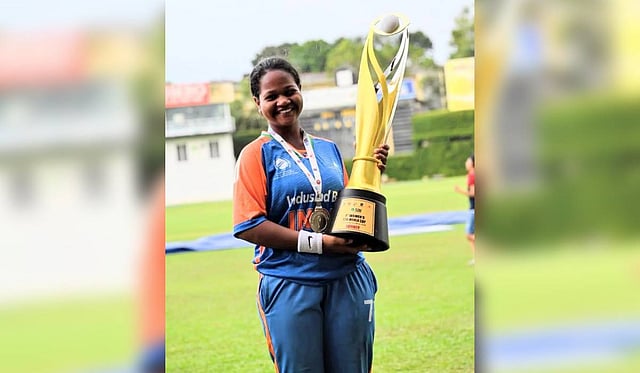 A completely blind cricketer from a remote village in the Eastern Ghats of Alluri Sitarama Raju district, Karuna scored a crucial 42 runs, helping India complete the chase comfortably. Karuna is a Class 10 student at the Government Residential School for Visually Challenged Girls in Visakhapatnam, and represents the country in the B1 category, meant for players who are fully blind.