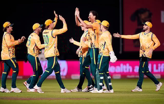 Rain initially reduced the match to a nine-overs-per-side contest and the Proteas, after being put into bat, made 97-5 off 7.5 overs before another heavy shower arrived in the Welsh capital, further truncating the game. Captain Aiden Markram top-scored with a 14-ball 28, while Donovan Ferreira (25 not out) and Dewald Brevis (23) chipped in.