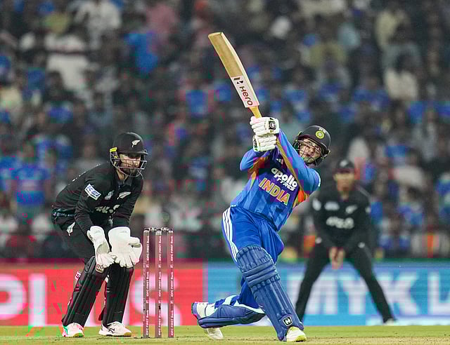 He can sometimes lose shape when trying to muscle the ball but other that, there aren't many weaknesses. Ish Sodhi went for sixes on the off and the on side. The returning Mitchell Santner, usually a scourge for many an Indian batting unit across formats, was off colour thanks to Sharma's ebullient strokeplay. Glenn Phillips, who turns the ball away from the left-hander, was despatched for a hat-trick of boundaries in front of square on the off side. They had three spinners and all three of them were taken apart by Sharma. A gauntlet had been laid down.