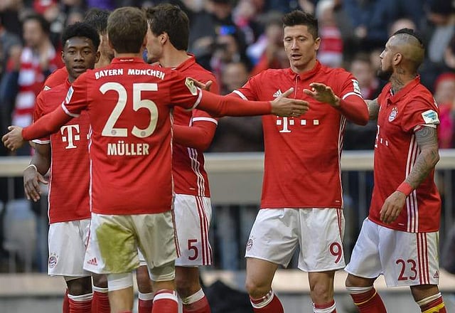 Vidal opened the scoring and a Lewandowski penalty doubled Bayern's lead just past the midway point in the first half, with the Pole making it 3-0 just before the break after a Douglas Costa shot had been saved.