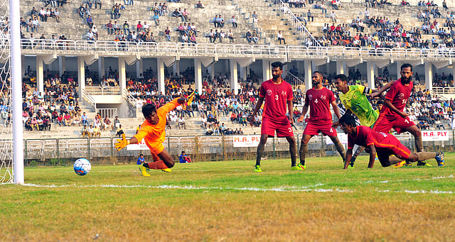 Centre back Lijo S took a long throw into the box from the left that was helped on the way by Joby's header. SBT forward Usman, with his back towards the goal, managed to connect the ball with a backheel finish.