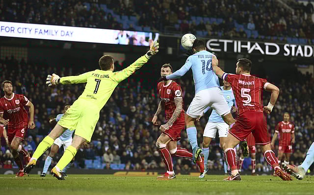 MANCHESTER: A goal in stoppage time by Sergio Aguero saved Manchester City's blushes as it was enough to secure a 2-1 win over second-tier Bristol City in their League Cup semi-final first leg clash on Tuesday.