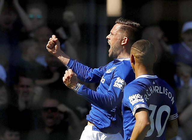 Dominic Calvert-Lewin helped the ball on with the flick of his head and Richarlison sent a spectacular scissor-kick finish flying past David de Gea.