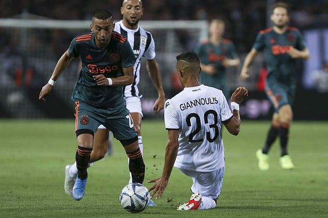 Hakim Ziyech put Ajax ahead on 10 minutes in Greece when his devilish free-kick grazed the head of a defender and flashed beyond PAOK goalkeeper Alexandros Paschalakis.