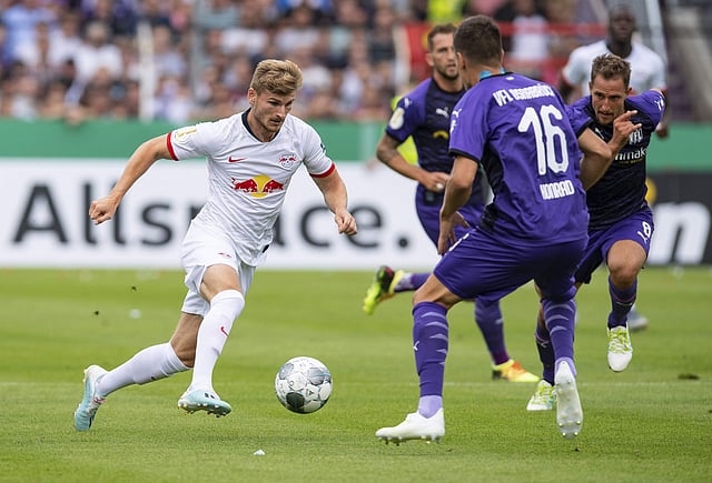 Osnabrueck's Etienne Amenyido briefly cancelled out Marcel Sabitzer's early opener, before further goals from Sabitzer and Lukas Klostermann saw Leipzig wrestle back control.
