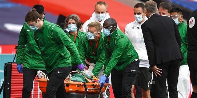 But during a lengthy stoppage, Bailly staggered on the touchline before being placed on a stretcher and wheeled off the Wembley touchline on a stretcher by medical staff wearing protective clothing as part of coronavirus prevention measures.