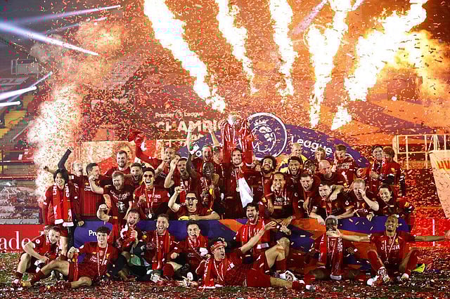 But Alex Oxlade-Chamberlain completed the job for Liverpool with a fifth goal in front of the Kop where the players later collected the trophy. The presentation took place on a podium placed where fans sat before the pandemic shut them out of stadiums.
