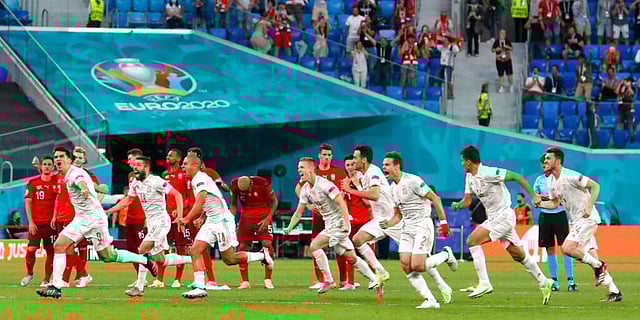 SAINT PETERSBURG: Goalkeeper Unai Simon was the hero as Spain edged past 10-man Switzerland 3-1 on penalties on Friday to set up a Euro 2020 semi-final against either Belgium or Italy.