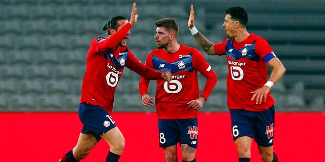 Lille is two points ahead of defending champion Paris Saint-Germain and three ahead of third-place Lyon, which drew 1-1 at Marseille in Sunday's late game.