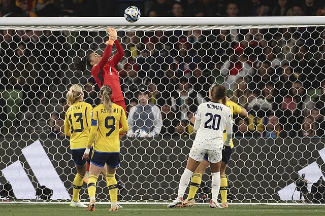 US goalkeeper Alyssa Naeher fruitlessly argued she had saved Hurtig’s attempt, but it was ruled over the line. The stadium played Abba’s “Dancing Queen” in the stadium as the Swedes celebrated.