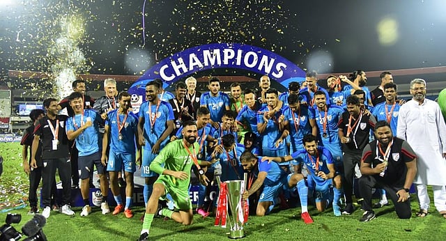 BHUBANESWAR: Captain Sunil Chhetri rose to the occasion with his 87th international goal as India won the Intercontinental Cup with a 2-0 victory over Lebanon in the final on Sunday.