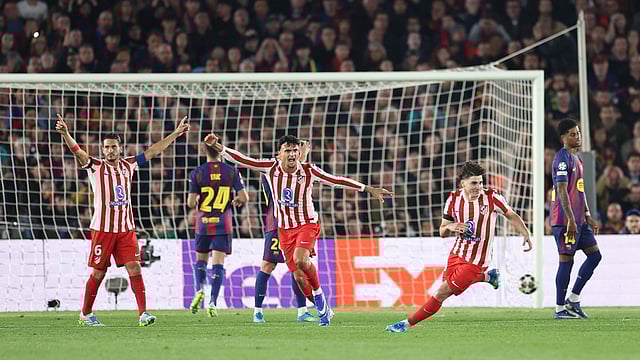 BARCELONA: Julian Alvarez and Alexander Sorloth's goals earned Atletico Madrid a commanding 2-0 lead over 10-man Barcelona in a tense Champions League quarter-final first leg clash on Wednesday.
