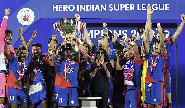 MUMBAI: Bengaluru FC clinched their maiden Indian Super League title as Rahul Bheke found a championship-winning header in the dying minutes of the final against FC Goa, here Sunday.