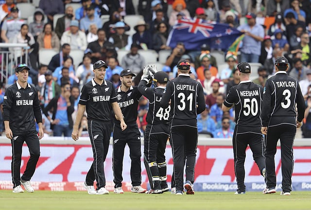 - India all out for 221 as New Zealand win by 18 runs. They will take on either England or Australia in Sunday's final