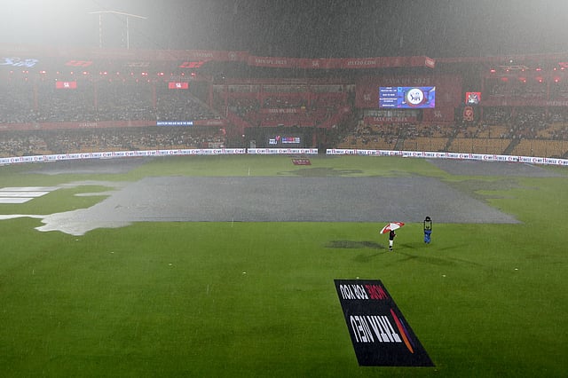Rain of varying intensity that started around 6 pm never relented as even the toss could not take place, and the officials eventually called off the game at 10.24 pm.