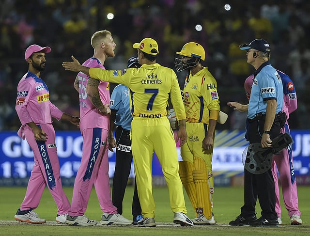 Dhoni losses calm over 'no-ball' u-turn (CSK vs RR group game):