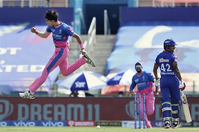 ABU DHABI: Rajasthan Royals' pace battery, led by Mustafizur Rahman, put up a disciplined effort to restrict Delhi Capitals to a modest 154 for six in their Indian Premier League match here on Saturday.