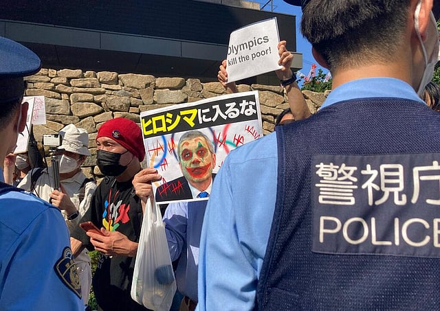Participants in the demonstration gathered in front of a five-star hotel in the capital, where the International Olympics Committee (IOC) President Thomas Bach stays, chanting 'no more Olympics'.