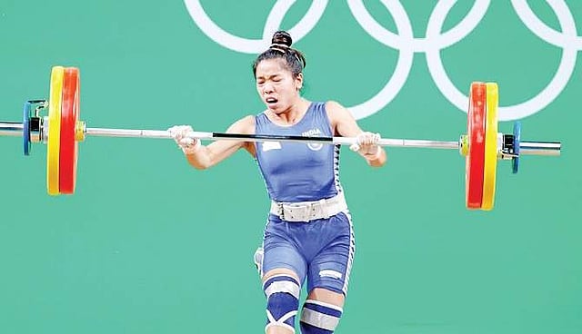 The 23-year-old from Imphal lifted 85kg in snatch and 109kg in clean and jerk to total an impressive 194kg in the women's 48kg to pick up a rare honour for India. She also created a new national record of 194kg.