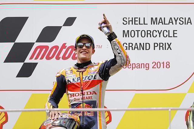 Marquez, who had crashed out of the Australian GP, secured the win with a timing of 40.32.372mins, while Rossi finished 18th in the end, 58.288s behind the Spaniard.