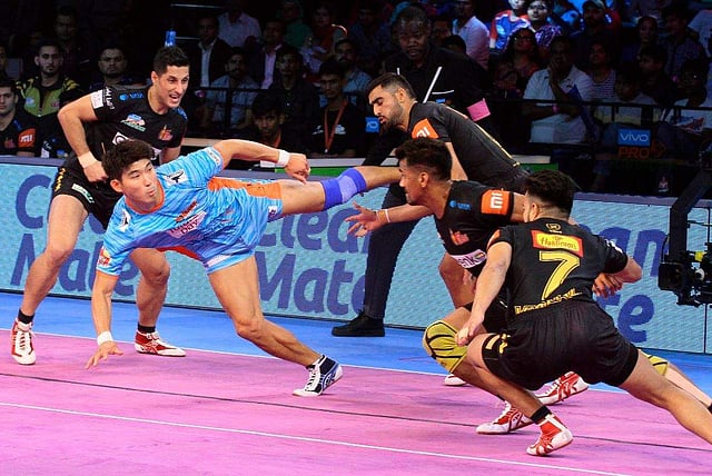 It was a disappointing night for Telugu Titans as they squandered many opportunities to win the game (Photo | Twitter/ProKabaddi)