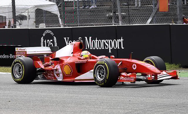 Now a Formula Two driver, Schumacher wore a helmet that paid tribute to his father's career as he drove the car that carried his father to 13 victories and the drivers' title in 2004.