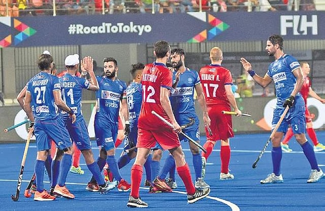 India 4 (Harmanpreet Singh 5th, Mandeep Singh 24th, 53rd, SV Sunil 48th) bt Russia 2 (Andrey Kuraev 17, Semen Matkovskiy 60).