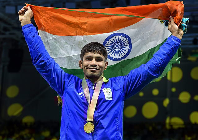 India's previous best show was in 2013, when the country had three in their kitty courtesy Amir Dahiya (silver), Bajrang Punia (bronze) and Sandeep Tulsi Yadav (bronze in Greco-Roman) Aware was in complete control of the bout and jumped in joy at the end, having won the biggest medal of his career.