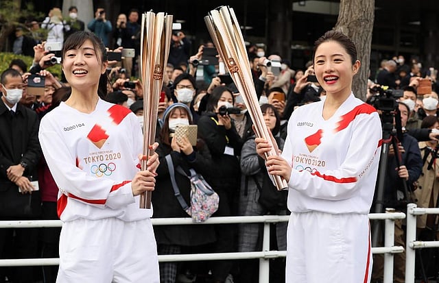 A quartet of runners carried unlit torches for some 200 metres each as organisers meticulously went over the fine details before the Olympic flame arrives in Japan to wind its way around the country from March 26 to July 24, when the Games begin.
