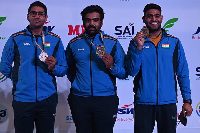 NEW DELHI: Shotgun shooters Prithviraj Tondaiman, Lakshay Sheoran and Kynan Chenai ended India's campaign at the ISSF World Cup with a gold medal in the men's trap team event here on Sunday.