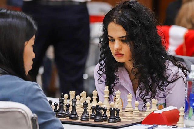 International Master Tania Sachdev during the 11th and final round of the 44th Chess Olympiad, at Mamallapuram near Chennai. (Photo | PTI)