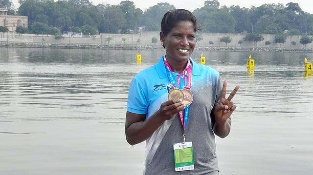 She won the K2 bronze partnering Sandhya Kispotta. They are neighbours and have been competing together for years now. Even Sandhya resumed kayaking a couple of months back. "First Covid and then birth of my child meant I couldn't train for two years. My child turned one recently. My child is with me only here in Ahmedabad. My husband takes care of the child when I am training or competing," said Sandhya.