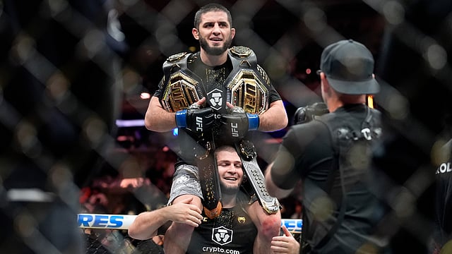 Makhachev joined a short list in UFC history — the company just celebrated the Nov. 12, 1993, anniversary date of its first card — of male fighters who won championships in two weight classes. The others: Henry Cejudo, Daniel Cormier, Randy Couture, Georges St-Pierre, B.J. Penn, Conor McGregor, Jon Jones, Alex Pereira and Ilia Topuria.