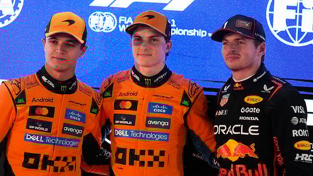 Norris set the fastest time on his first go, with Piastri .035 seconds behind and Verstappen almost half a second back. But Norris botched his second run and Piastri took advantage to beat him by .108 seconds after a faultless lap.