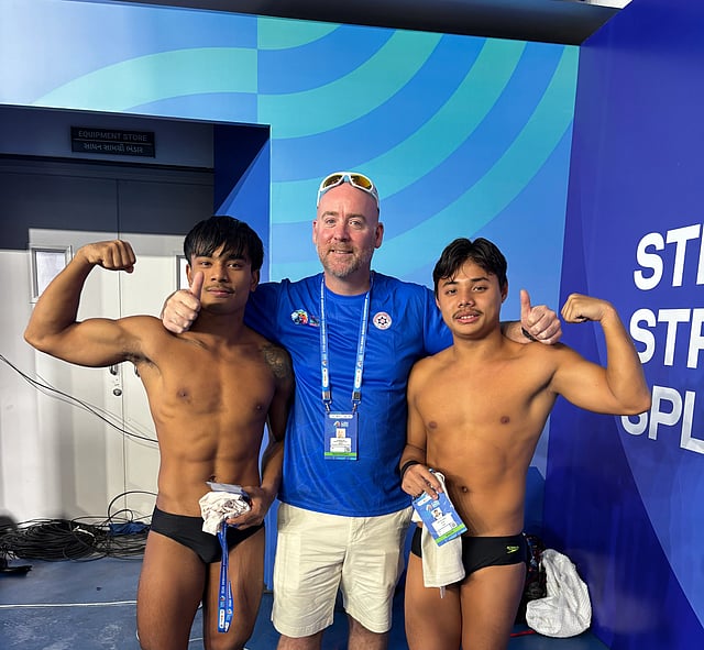 On Monday evening, just before the start of a final, Ameen debriefed with an Indian swimmer while looking at his race analysis from the heat. "You need to keep these things in mind," he says to him. "Your numbers are pretty good otherwise."