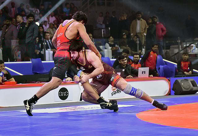 There is no stopping the Haryana team. The Thunders thundered into the final after beating Punjab Royals 5–4 at the Pro Wrestling League at the Noida Indoor Stadium late on Friday. Entering the contest as table-toppers with four wins and eight points, Haryana absorbed early pressure before turning the tie decisively in the second half, underlining why they have been the most consistent side of the season. Punjab Royals, who finished fourth in the league stage, pushed Haryana all the way in a gripping nine-bout contest.