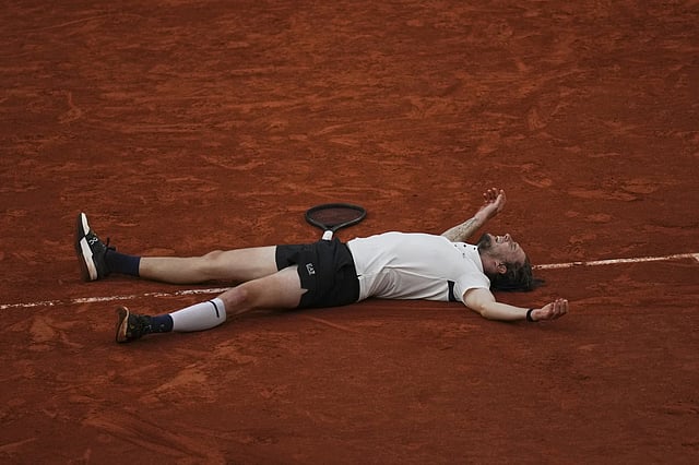 The 27-year-old Bublik dropped to the court, smudging himself with the red clay, when he finished off the biggest win of his career after about 2 1/2 hours.