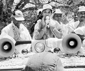 ENS tracked down Sunitha’s unique campaign which was devoid of any pomp and show. “The Congress killed not only my husband but as many as 48 TDP leaders. I am like your sister and am in dire straits. Kindly help me help you. If I am elected I will stand by you and solve all your problems,’’ she tells voters.