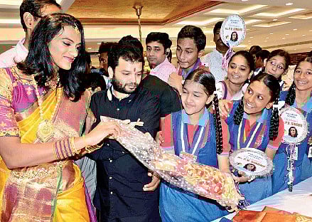 Earlier in the day, dressed up in a Gandhari Pattu saree, the ace shuttler, took part in the inaugural of the garment showroom as scores of people, especially children, despite rain, stood along the VIP Road to welcome her. She tried a a few designer wear too. Sindhu then interacted with the students of Pollocks School who took autograph from her before posing for a slefie with the children.