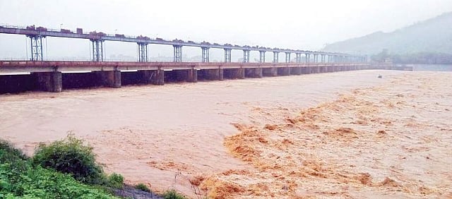 The water level in Vamsadhara at Gotta Barrage was at 35.94 metre when compared to the full reservoir level (FRL) of 38.1 mm on Monday morning. By the evening, it reached 37.67 metre. With the inflows reaching 33,100 cusecs, the officials lifted 22 crest gates of the total 24 at Gotta Barrage. As the roads were inundated, communication to Kollivalasa village has been cut off. Flood water entered into a PHC at Annavaram in Palakonda mandal and the school at K Vekatapuram of R Amadalavalasa mandal.